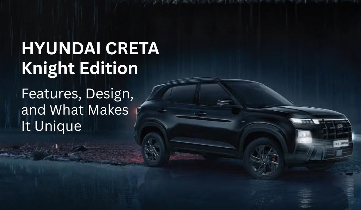 Hyundai's innovative models continue to set the standard as the automotive world moves toward electric mobility. The Hyundai Creta Knight Edition is a bold and stylish option in the mid-size SUV market. The Knight Edition is for people who want something unique and sporty. It combines Hyundai's famous reliability with eye-catching looks and cutting-edge technology. Let's look at what makes the Hyundai Creta Knight Edition a special one, and about the Creta Knight Edition features are. All New Hyundai Creta Knight Edition Specifications Interior With Excellent Features And Cutting-Edge Technology The Knight Edition offers comforts and high-tech features that Hyundai is known for. A completely digital instrument cluster, a touchscreen infotainment system with Apple CarPlay and Android Auto, wireless charging, and automatic climate control make sure that your trip is comfortable and connected. The cabin is large and has plenty of legroom. It also has high-quality materials throughout, which is what you would expect from a luxury car. Unique Styling And A Striking Hyundai Creta Design The Hyundai Creta Knight Edition stands out right away because of its unique upgrades to the outside. The all-black theme is enhanced by a glossy black front grille, red accents on the front and back, blacked-out roof rails, and black alloy wheels. These changes make the Creta Knight Edition look strong and sturdy. The cabin keeps up the high-end theme with black upholstery, contrast stitching, and Knight Edition badging. This makes it feel sporty and immersive for both the driver and the passengers. Safety And Performance The Knight Edition comes with both petrol and diesel engines, which gives you a good balance of power and fuel efficiency. Safety is excellent, with Creta Knight Edition features like six airbags, ABS with EBD, rear parking sensors, and electronic stability control, making every drive safe. These features fit well with Hyundai's focus on safety and new ideas, which can be seen in their new electric cars. Also Check Out: New Hyundai Creta Top Model Specifications What Makes The Hyundai Creta Knight Edition Different? • Unique Styling: Stands out with bold, sporty styling, featuring exclusive blacked-out elements and red accents for a distinctive, dynamic look. • High-end Features: A tech-savvy cabin and luxury touches make driving more enjoyable. • Sporty Persona: The Knight Edition is perfect for buyers who want a unique, sporty SUV with Hyundai's reliable performance. Price Range Of The Hyundai Creta Knight Edition The pricing of the Hyundai Creta Knight Edition in India ranges from ₹14.11Lakh to ₹19.79Lakh (ex-showroom), depending on the model, color, and transmission type. This special edition, based on the S(O) and SX(O) trims, features a unique blacked-out exterior and an all-black interior with red accents. It comes with both petrol and diesel engines, and you can choose between manual and automatic gearboxes. Why Should You Buy From Blue Hyundai? When you choose Blue Hyundai, you get access to special deals, expert advice, and a stress-free buying process. Their skilled team helps you with options, financing, and after-sales support. Key Takeaways The Hyundai Creta Knight Edition is a one-of-a-kind SUV that gives you style, substance, and individuality without losing any of the Hyundai Creta Knight Edition specifications. The Knight Edition keeps the excitement going for people who like new designs and luxury. Drive into tomorrow with the Hyundai Creta Knight Edition—only at Blue Hyundai, where style electrifies the road.